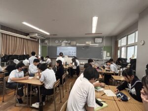 10/3(金)7限 修学旅行で行くマイクロネシアモールの班を決めました。クラスの枠を取り払って、学年全体での班決めです。どんどん色んなことを決めていき、修学旅行がもうすぐ!という気持ちになりますね。
