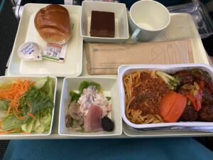 ACE組はハノイ、BDF組はホーチミンで乗り継ぎをし、目的地ダナンへの到着は17時すぎ(日本時間19時)。機内食も出ました。