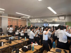 10/16にグアムの交流校とのオンライン交流があります。各クラスやることが違うのですが、2組はソーラン節を踊ります。その練習に余念がない2組!素晴らしい発表にしよう!