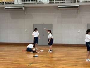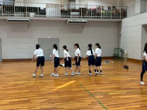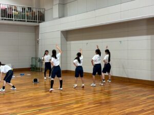 女子の体育はダンスをしています。班に分かれて創作ダンスをします。このダンスは交流校で披露します。楽しみながら頑張ろう♪
