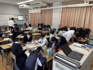 本日の探究活動。今日も楽しく積極的にどのグループも取り組んでいました。