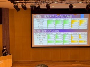 10/28(火)7限に、9月に受けた第2回学力推移調査の結果返却と振り返り学活がありました。全体の結果としては、前回よりも成績がアップしていました。みんな、頑張っていくれていてうれしいです。