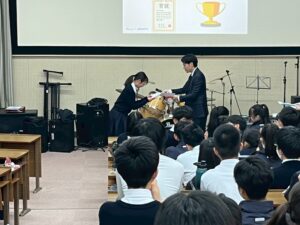 10/24(金)7限に、スタサプEフェスタの表彰式がありました。全国の上位10%に入った人たちが8人もいました!そしてなんと上位1%に入った人も2人いました!