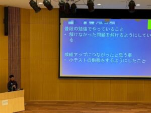 また、今回は成績の上昇が顕著だった人に、どんな風に勉強しているのかを教えてもらいました。感心すること、参考になることばかりでしたね。前向きに勉強に取り組んでいこう!