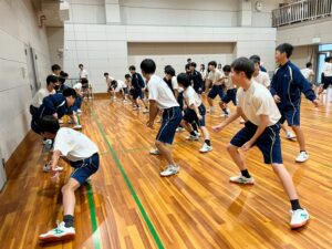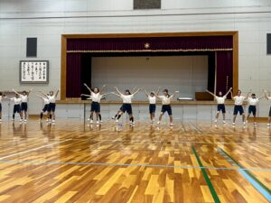 男子は先にソーラン節を練習していた2組の子たちが先生となり、他クラスに教えてくれていました。時間があまりない中ですが、当日までに個別でも練習しておきましょう。
