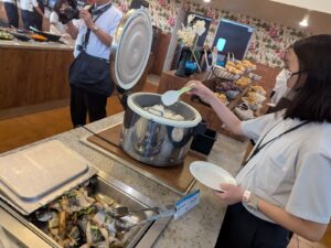 朝食はいつものレストランでバイキングでした。味噌汁や納豆などの和食もあり、すべての料理を完食するのが難しいぐらい、品数が豊富です。