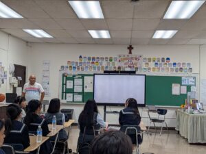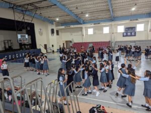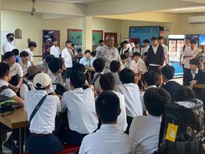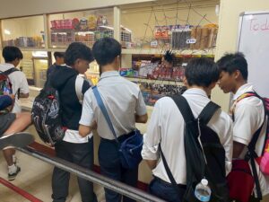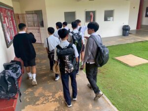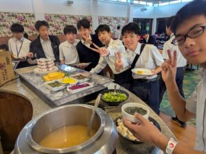 現地の女子校、男子校では、校内見学、授業、セレモニーなど、様々なイベントが用意されていました。午前中は現地校のバディと一緒に授業を受けました。留学に来た感じで、富中生は圧倒されながらも、授業に向き合っていました。頑張るといっぱいお腹が空きます。バディと一緒にランチを頂き、食後の運動を楽しんでいました。じゃんけん列車も始まりました。