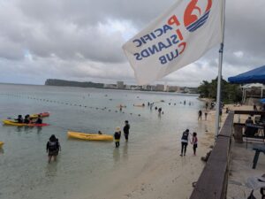 ホテルに戻ってからはBBQまで自由時間です。生徒はプ−ル、浜辺、売店、荷造りなど、班ごとにいろんな活動をします。台風26号の影響で昨日まで小雨でしたが、生徒の熱い思いで帰りのバスの中からグアムらしい青空と青い海を初めて見ることができました。