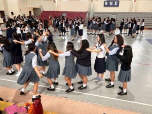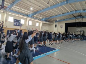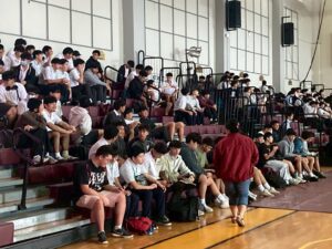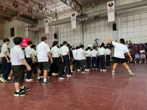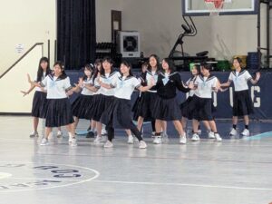 セレモニーでは、生徒代表の英語による挨拶にグアムの生徒の心に響くメッセージが込められていました。続いて富中から女子はダンス、男子はソ−ラン節の演技を披露し、大きな歓声があがるほど場が盛り上がりました。事前に何回も練習を重ねていたのでかなりのクオリティのパフォーマンスでした。楽しい時間はすぐに過ぎ去ります。6時間の交流でしたが、すべての生徒が一生忘れることのない掛け替えのない思い出となりました。