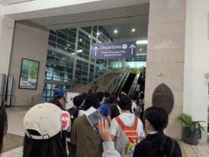グアム空港到着後、ス−ツケ−スを預け、出国審査・手荷物検査を受け、搭乗口に移動しました。搭乗開始まで空港内の店を回るなどしていました。