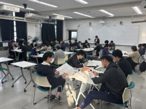 そして、研究授業後には、「指導と評価の一体化について」を討議の柱として研究討議を行いました。