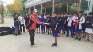 中学2年生と3年生や夏のネパール研修に参加した生徒が、富田林中学・高校での文化祭などの行事で集めた寄付金を、JASSラルパテに贈呈しました。この日、参加した中学2年生・3年生は、東住吉高校で実施された「チャリティーマラソン」にも参加させていただき、高校生と一緒に自分たちができる社会貢献活動を体感させていただきました。今後は、富田林中学・高校でも「チャリティーマラソン」をやってみたいなという声もあり、新たな活動につなげていきたいという前向きな気持ちに溢れていました。