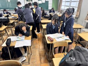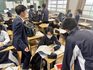 27日、28日は後期中間テストでした。今回のテストに向けて、動き出しはみんな良い感じ!!11月に入ってから家庭学習時間がどんどん伸びていました。休日には、5時間、6時間、さらに時間をかけて勉強に取り組んでいる人もいました。当日の朝は、いつもより早めに登校している人も多く、友達同士で問題を出し合ったり、もう一度ワークに取り組んでいる人、上手に時間を活用していました。