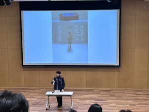 12/5(金)2限に、ビブリオバトルの決勝戦をアゴラで行いました。各クラス2人ずつ代表が出て、計6人での決勝戦です。どれがチャンプ本になってもおかしくないぐらい、全員が本の魅力を上手に伝えてくれていました。
