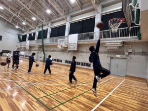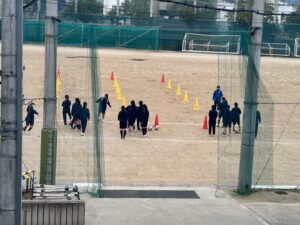 女子はサッカー、男子はバスケットボールをやっています。寒い中ですが、みんな元気いっぱいです!