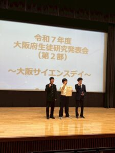 【SSH】大阪サイエンスデイにおいて、本校生徒の発表が優秀賞を受賞しました。