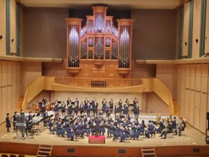 11月にLICはびきので開催された、「第7ブロック音楽会」に府立河南・藤井寺・東住吉・阪南大高さんと合同吹奏楽を組んで出演しました。総勢80名に近い人数で舞台はぎっしりになりました。