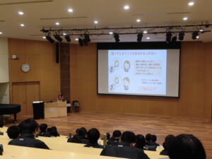 今回の講演では、子どもから大人への成長過程にある中学1年生にとって、自分と相手を尊重した人間関係作りの基本となることを教えていただきました。性に関する内容というと茶化した雰囲気にもなりがちですが、みんな真剣に聞いてくれていました。これから人間関係を築いていく上で、今回聞いたお話をぜひ思い出し、相手とお互いに良好な関係を築けるようになっていっていほしいと思います。