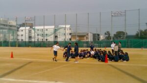 ↓ 入念なる準備体操(先生たちの方が体が心配!?)