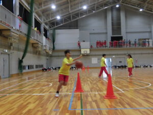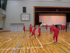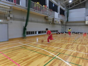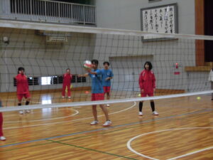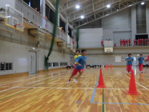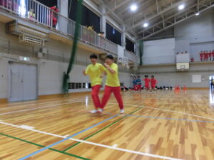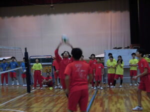 大会当日は、企画・運営した生徒たちが、朝7時30分から準備をはじめ、みんなわくわくで迎えました。バレーボールは、男女混合チームで難しさもありましたが、ファインプレー続出のなか、おおいに盛り上がりました。リレーは、二人三脚⇒ピンポン球運び⇒バスケットボールのドリブル⇒ケンケン⇒本気のダッシュという順番でたすきが繋がれました。二人三脚では、たすきがちぎれたり、体育館でのダッシュでこけそうになったりで、ハプニングだらけでしたが、クラスメイトの声援の中、完走しました。そして、最後はクラス対抗ドッジボール。男女全員参加ということで、なかなかハードなゲームとなりましたが、おもいっきり投げて、逃げて、楽しむことができました。