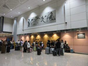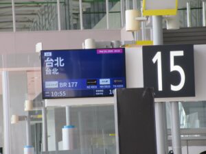 約3時間のフライトで機内食(メロンパン・肉団子の甘酢・チャーハン・チーズケーキ)を食べ、桃園国際空港へ到着しました。参加生徒は10月に修学旅行でベトナムに行っていますので、慣れた様子でフライトを楽しんでいました。