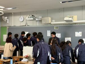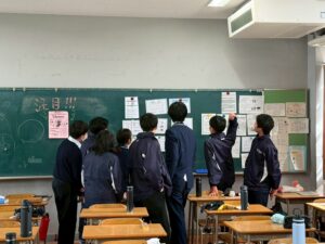 卒業式が近づいてきた3/10の昼休み。突如謎解きゲームが教室に掲示されました。これは、匿名希望さんたちが有志で作った謎解きゲームです。先生にかかわる謎解きで、解けたら先生からプロフィール帳などをもらえます。